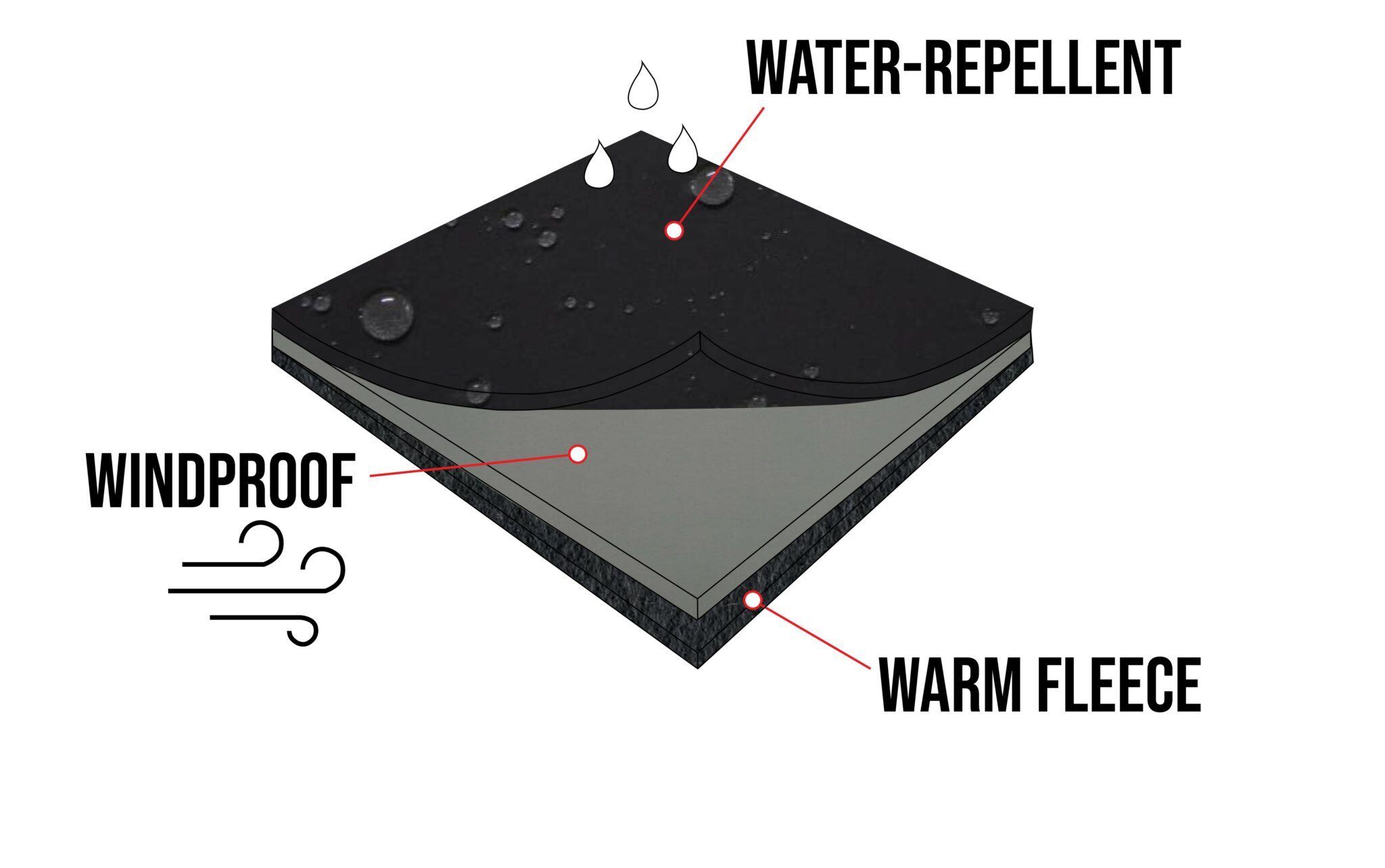 Embers feature a triple layer, windproof laminate shell that is constructed from a durable 4-way high tenacity stretch outer, a windproof moisture wicking TPU membrane and a warm fleece inner.