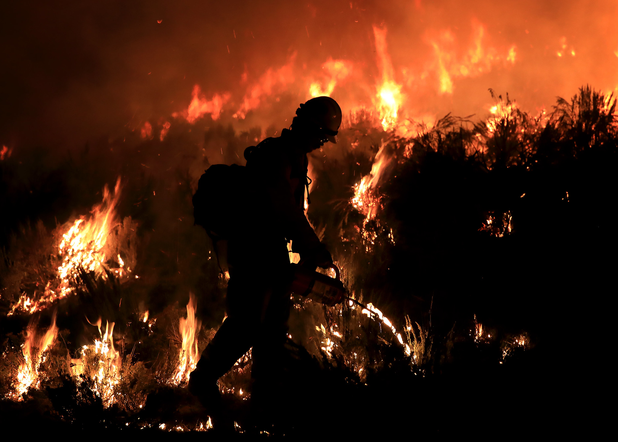 Wildfire work is endurance work. Crews may hike miles through steep, smoky terrain while carrying saws, fuel, and line gear.